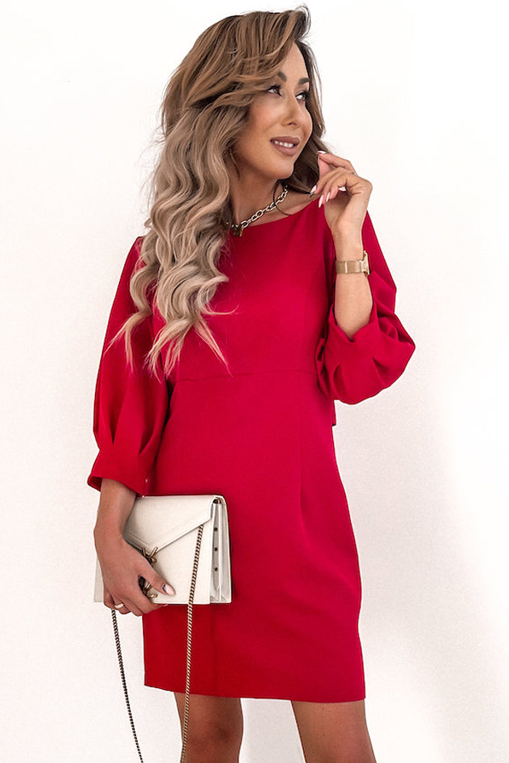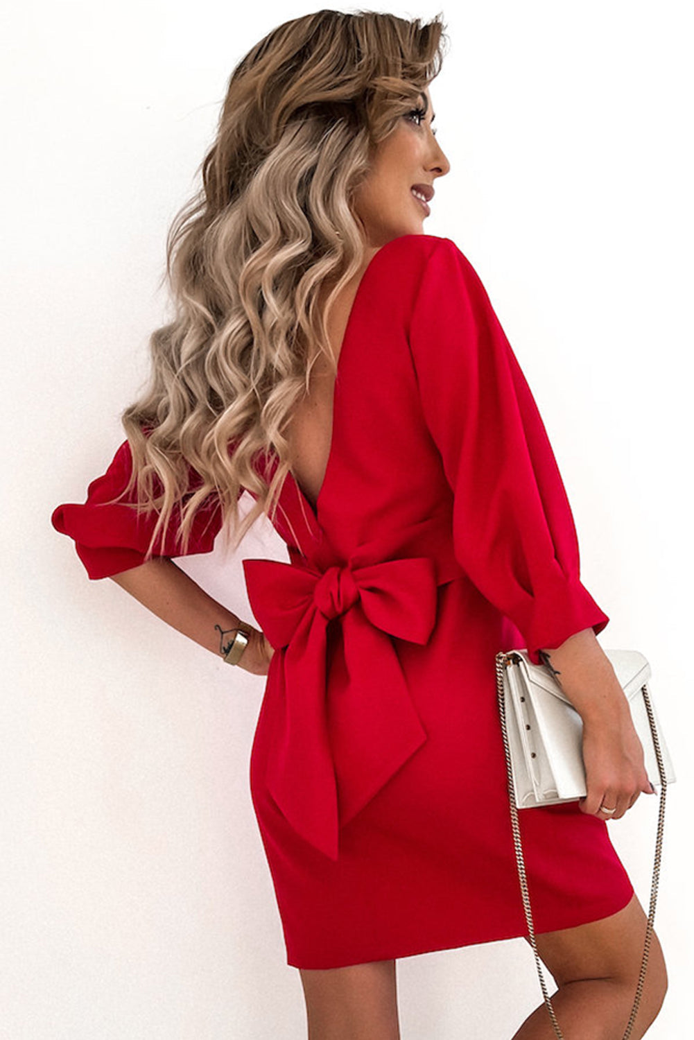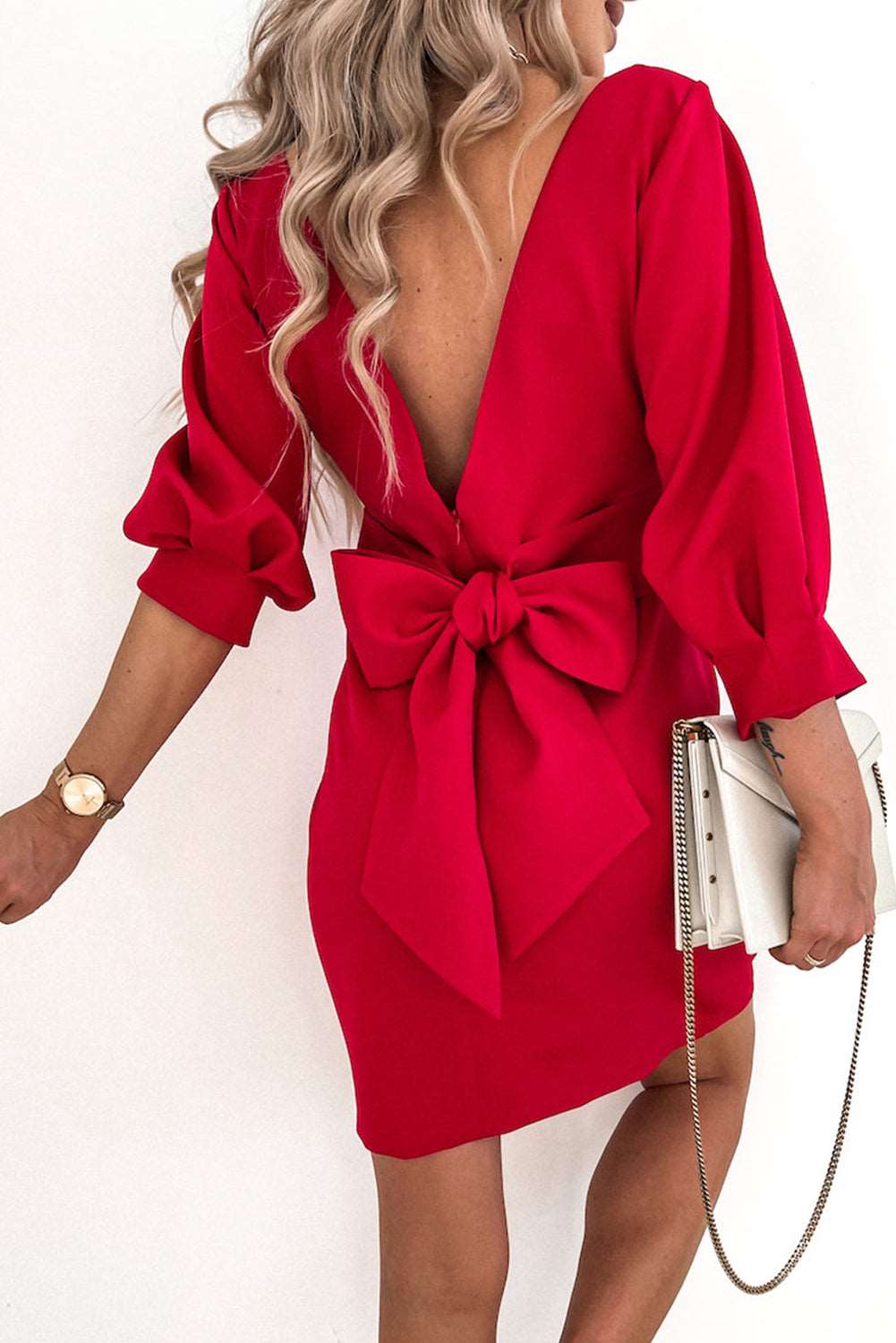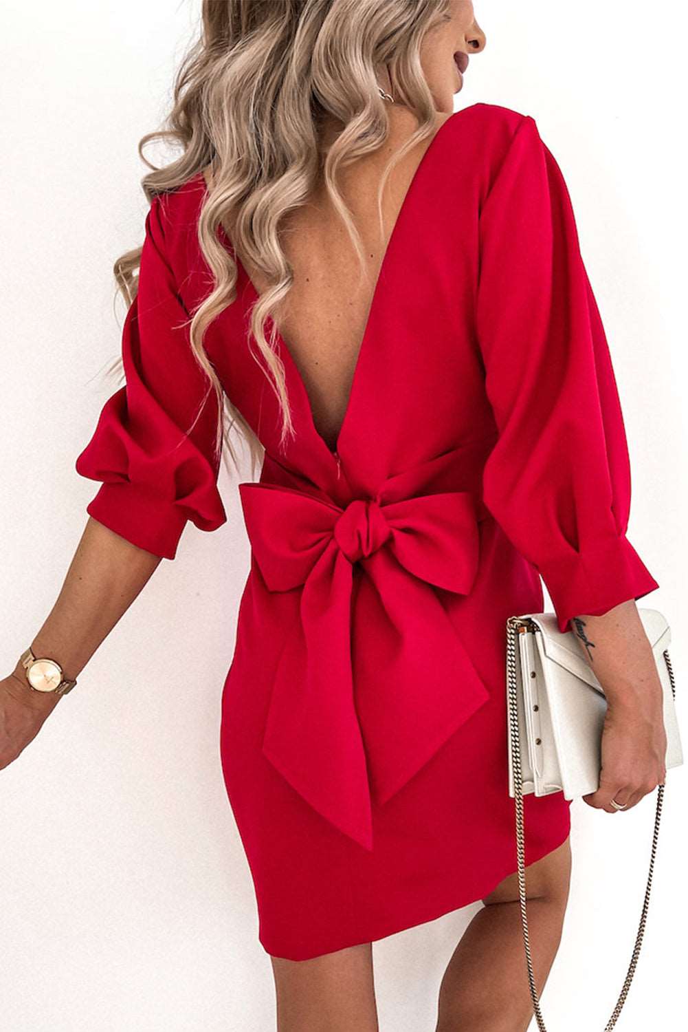 Bow Backless 3/4 Sleeve High Waist Mini Dress