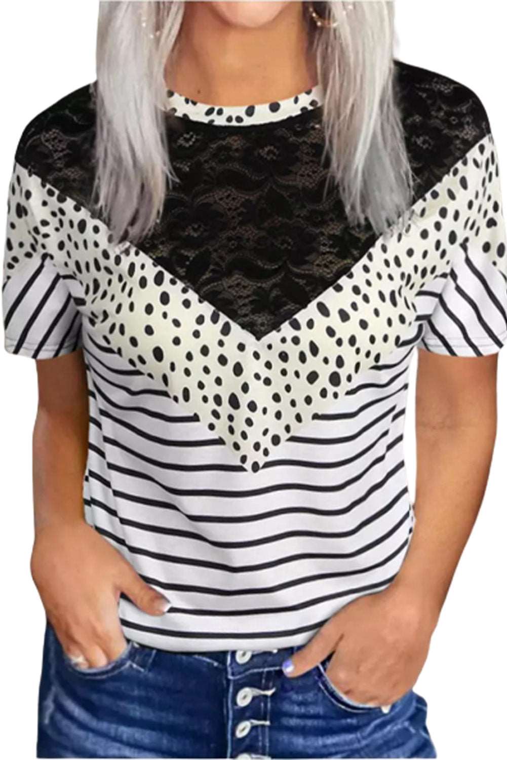 Chevron Colorblock Lace Leopard Striped Print Short Sleeve Top