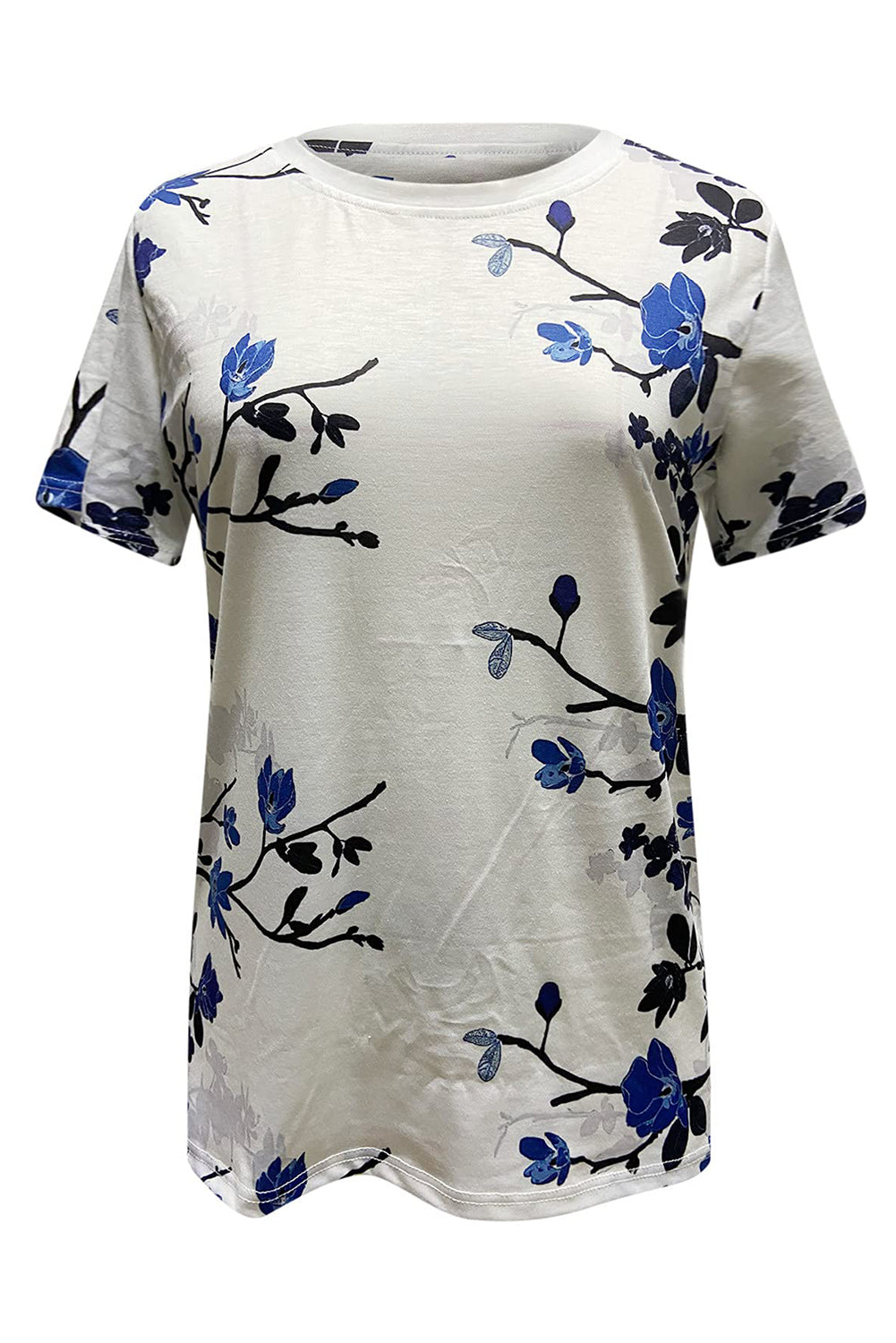 Floral Print Round Neck Short Sleeve T Shirt