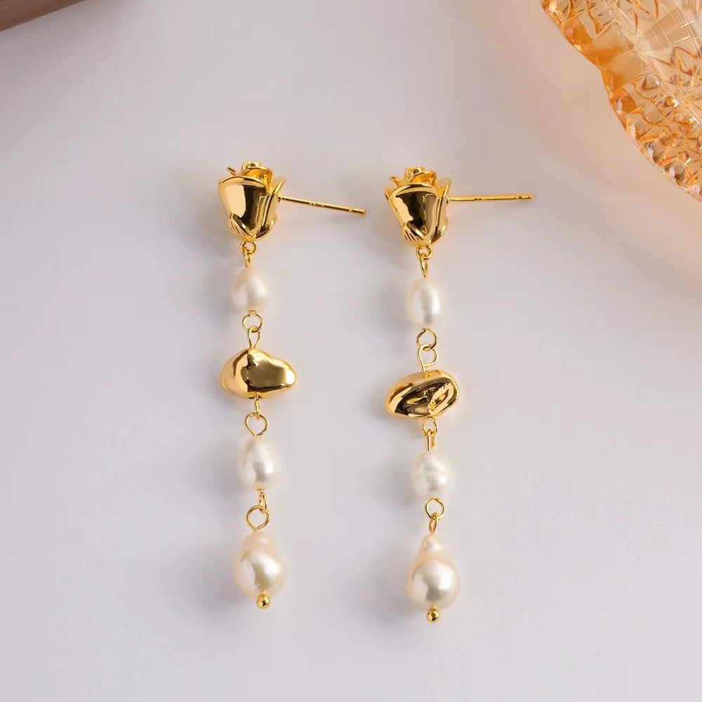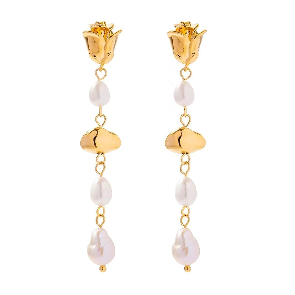 • Includes: 1 Pair of Golden Rose Pearl Drops