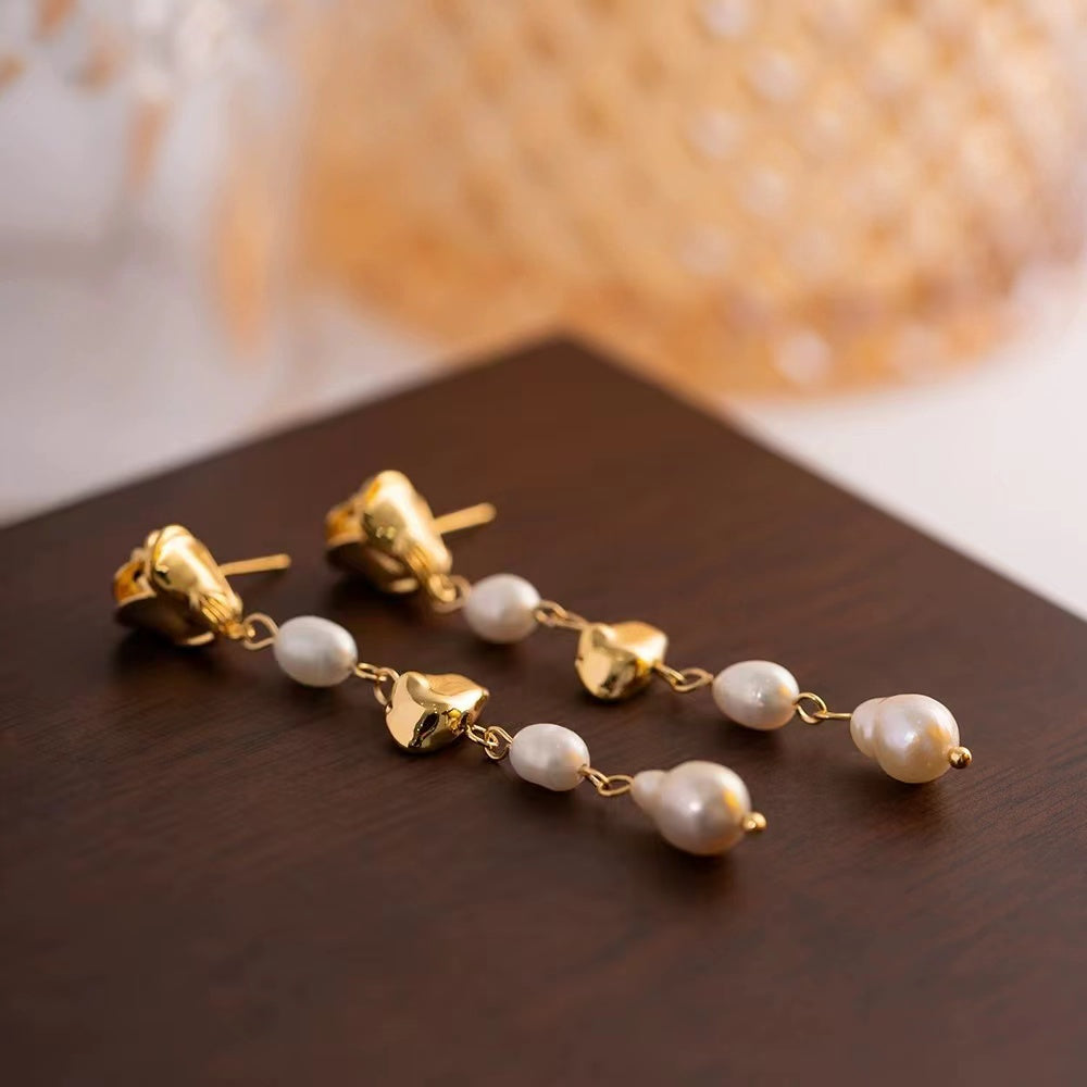 • 1 Pair of Golden Rose Pearl Drops + 1 * Gift Box