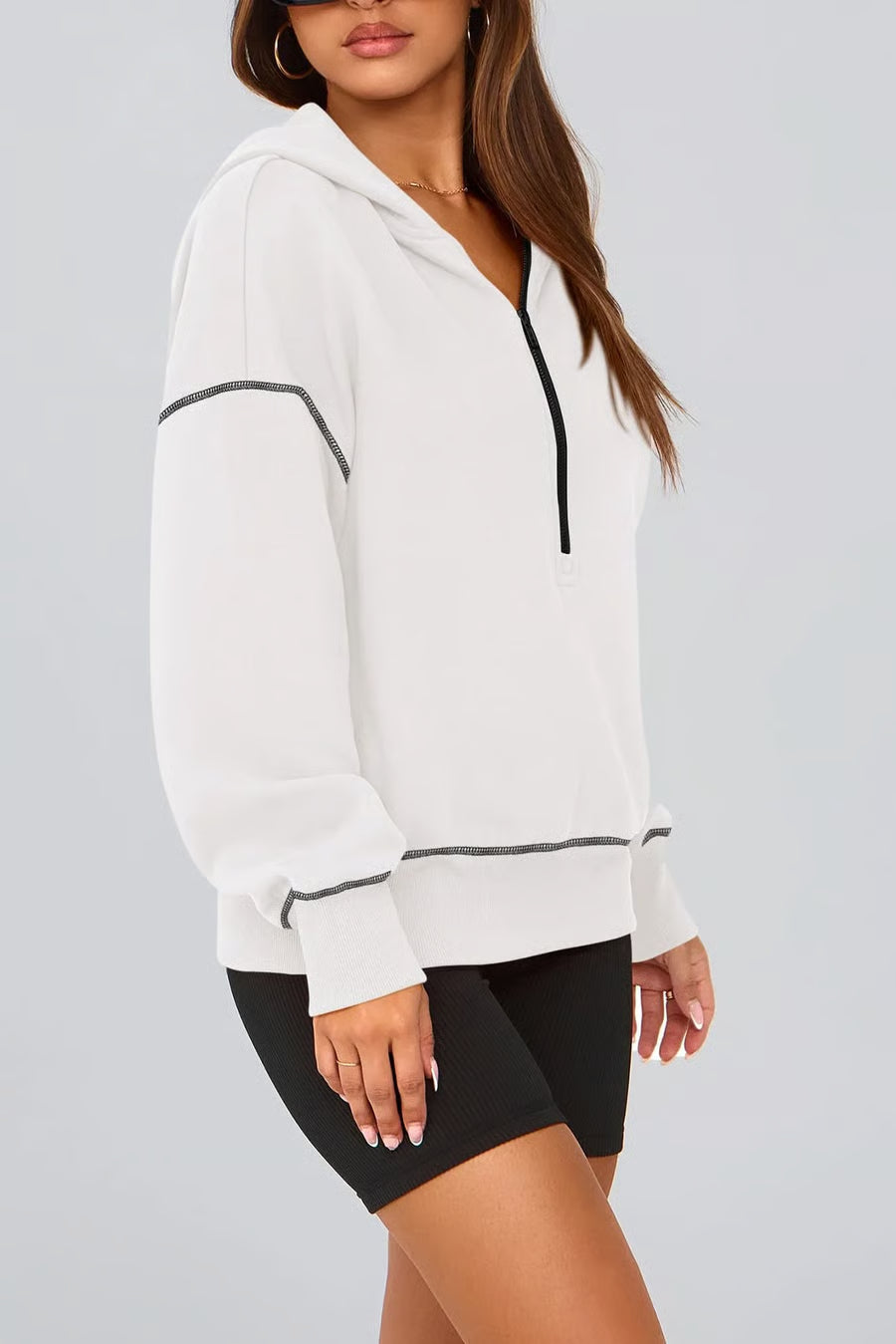This Half Zip Hooded Long Sleeve Cropped Pullover combines style and functionality with its adjustable half-zip design and comfortable hood. The long sleeves offer coverage and warmth, while the cropped length adds a modern, sporty silhouette. Crafted for versatile layering, it suits both activewear and casual outfits with ease.