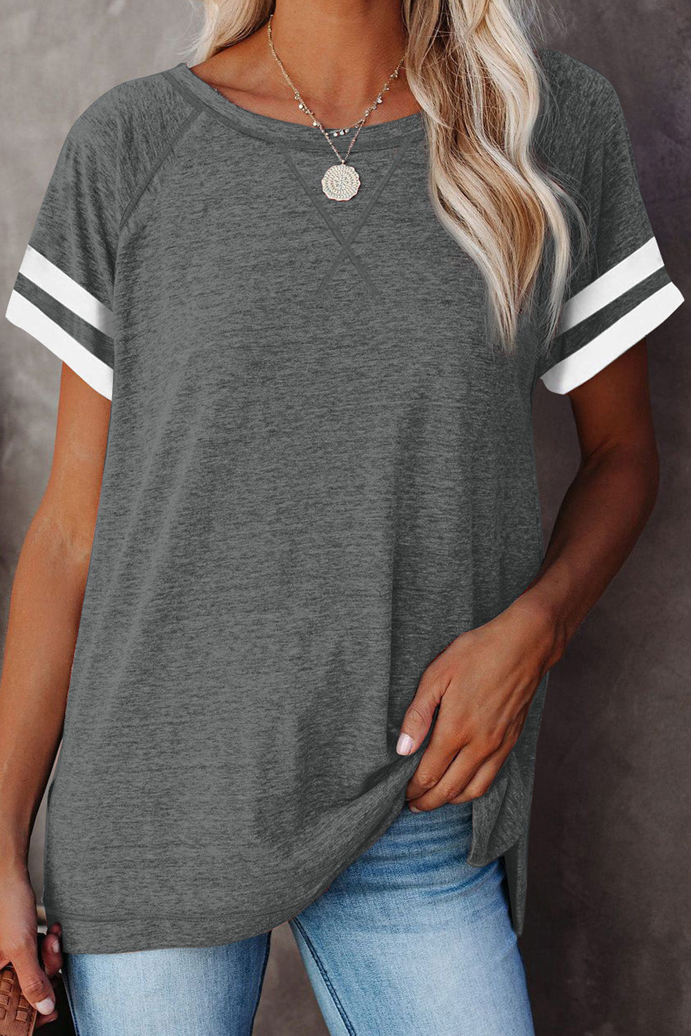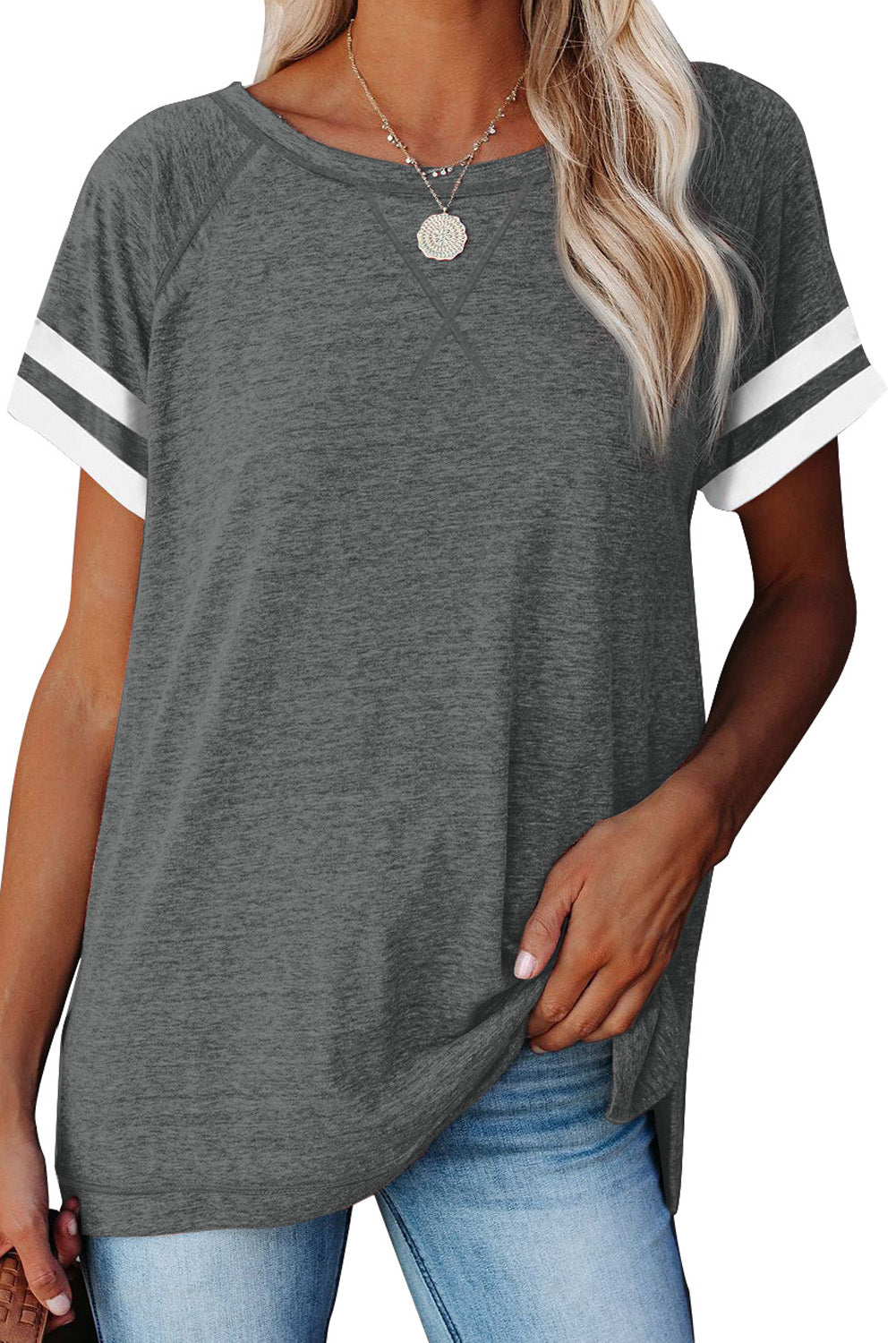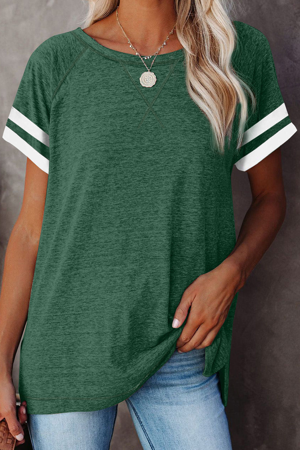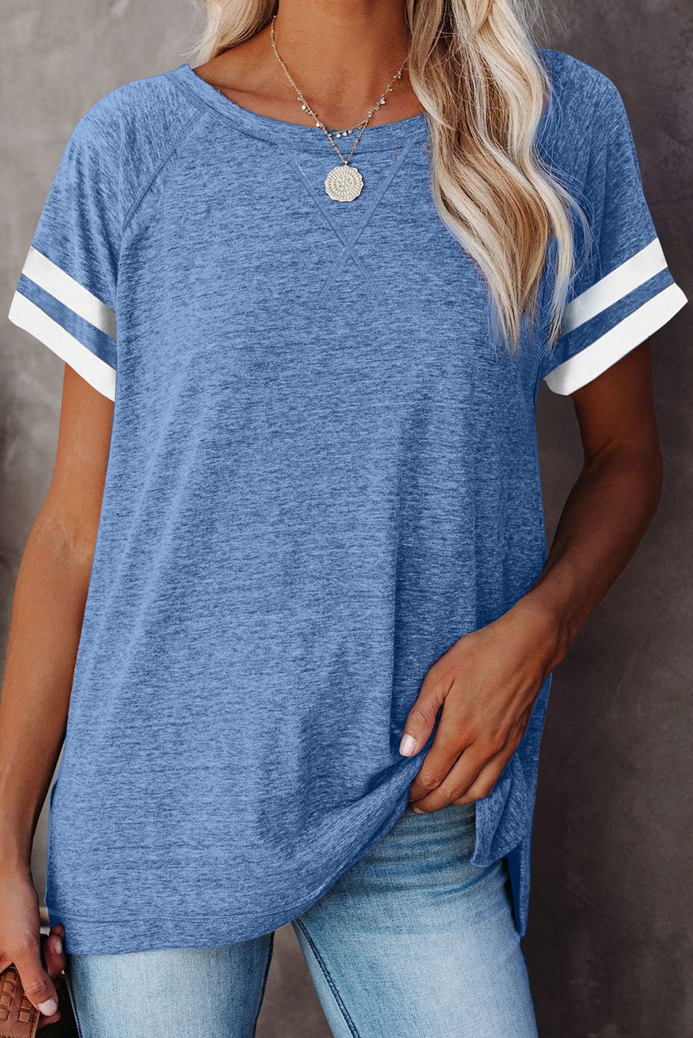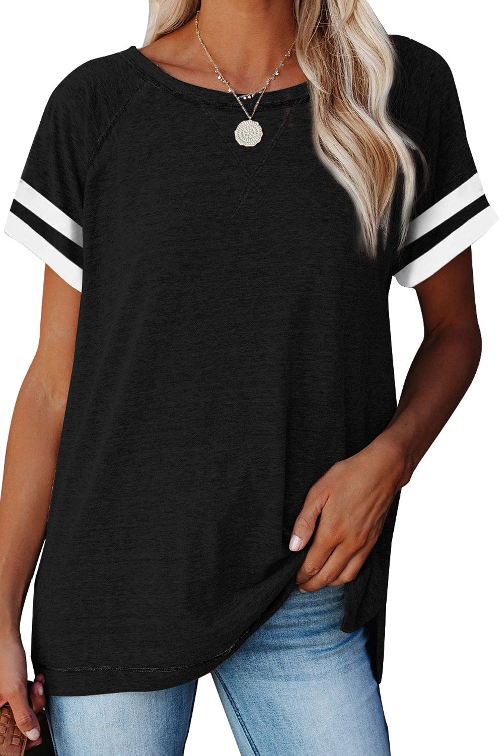 •The color block stripes on the sleeves make this simple t-shirt looks chic and different
