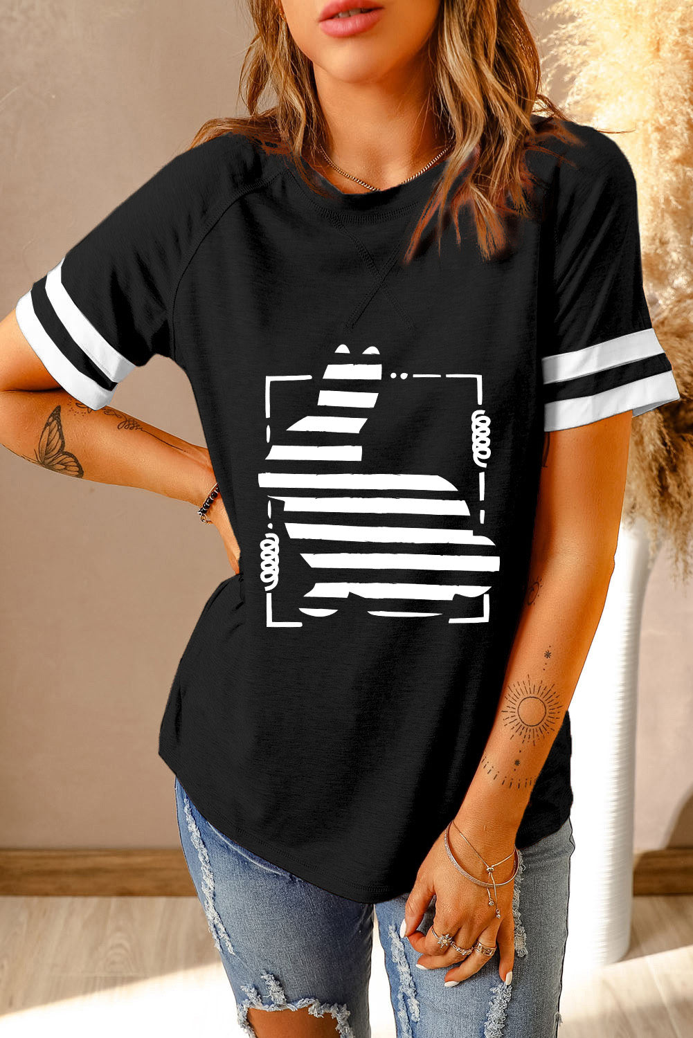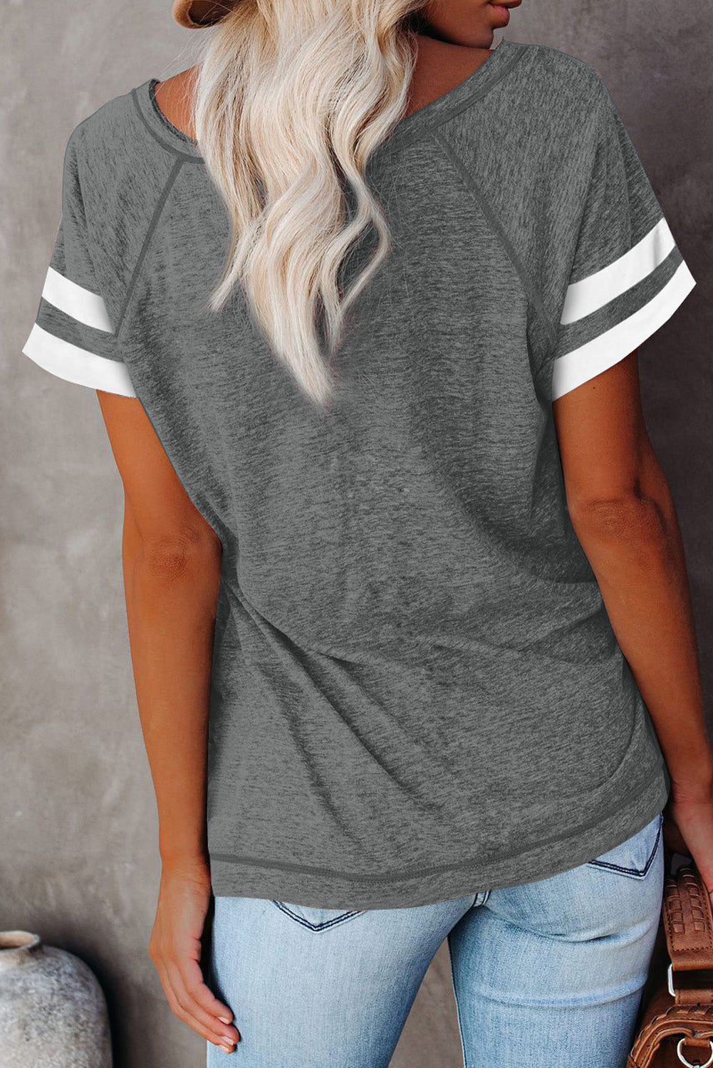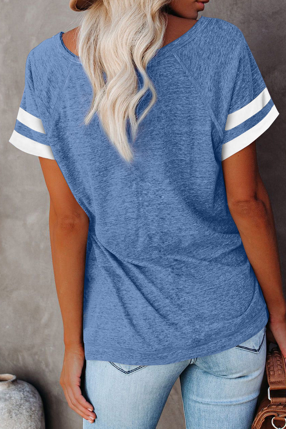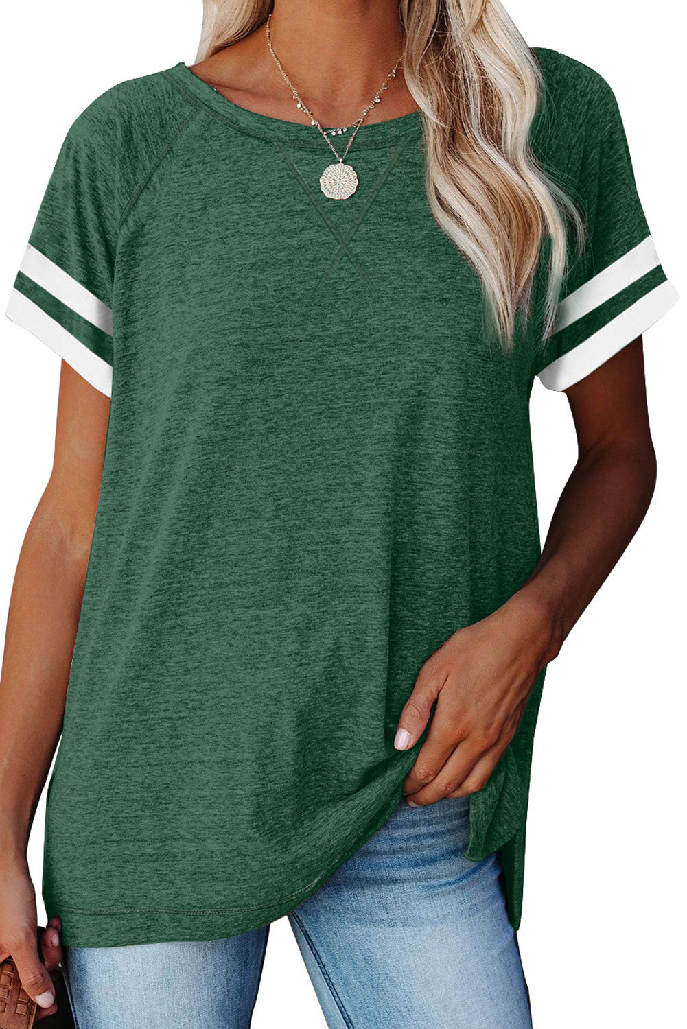 •The color block stripes on the sleeves make this simple t-shirt looks chic and different
