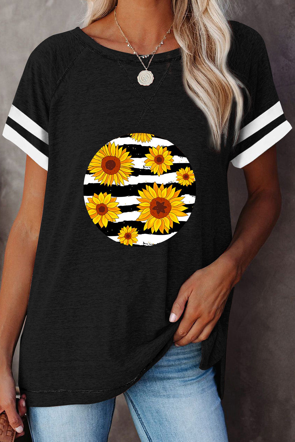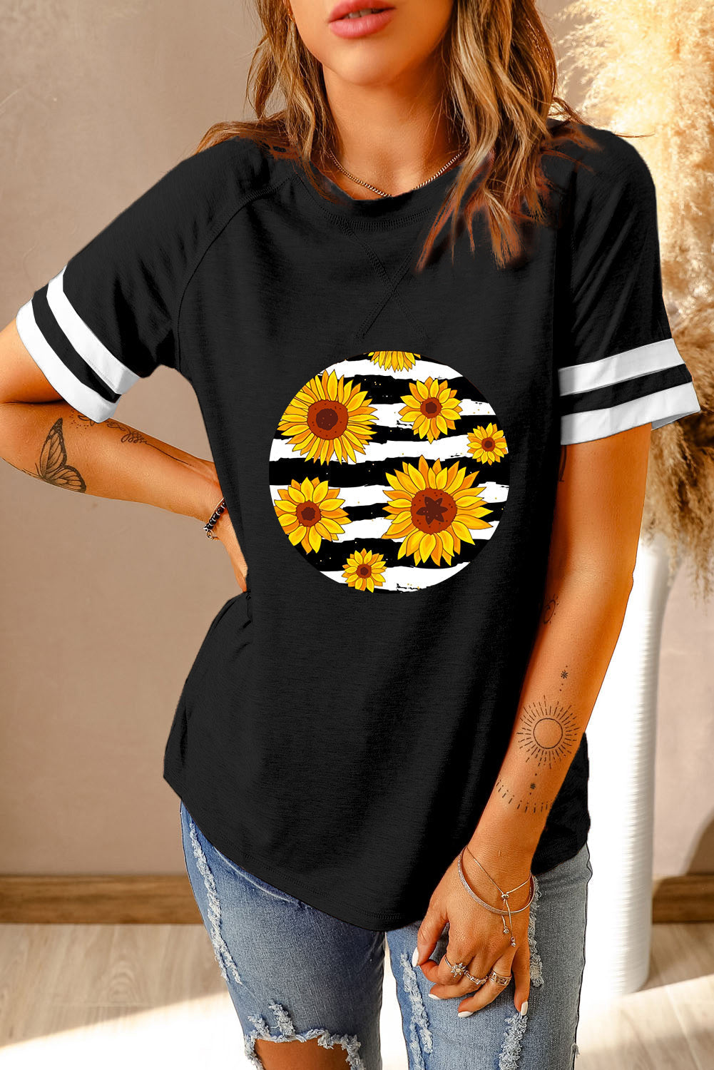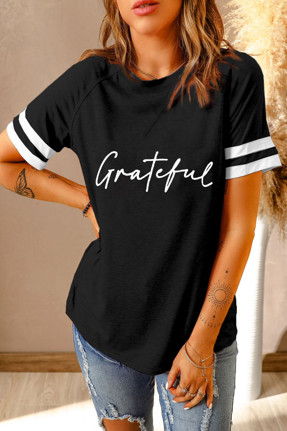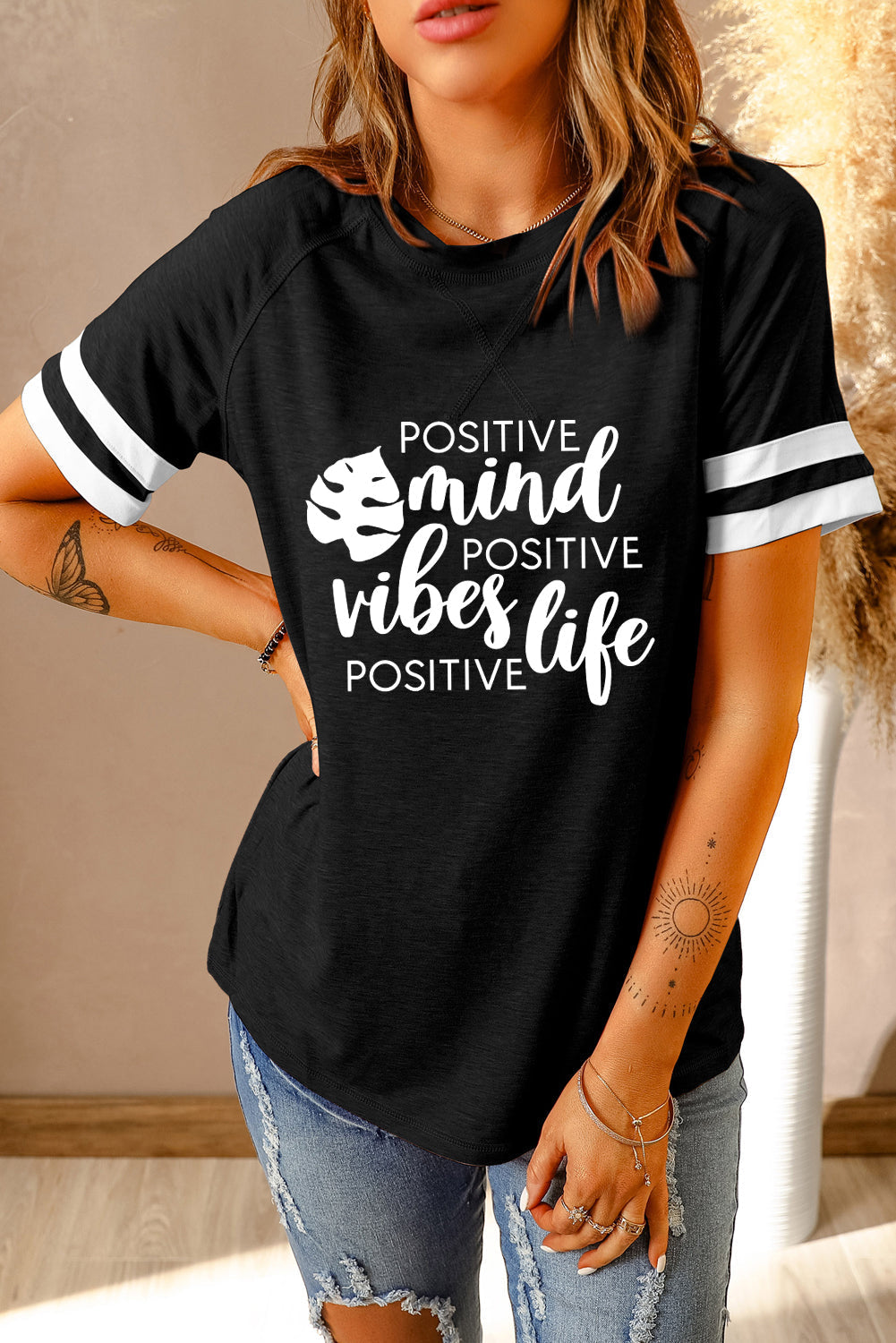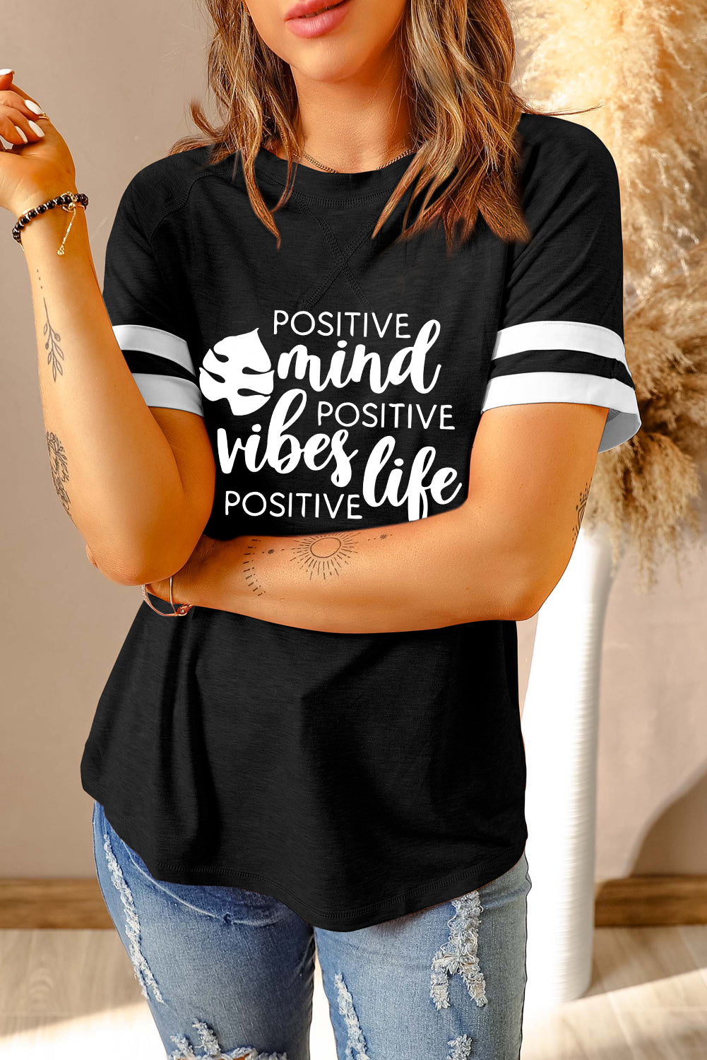 •The color block stripes on the sleeves make this simple t-shirt looks chic and different