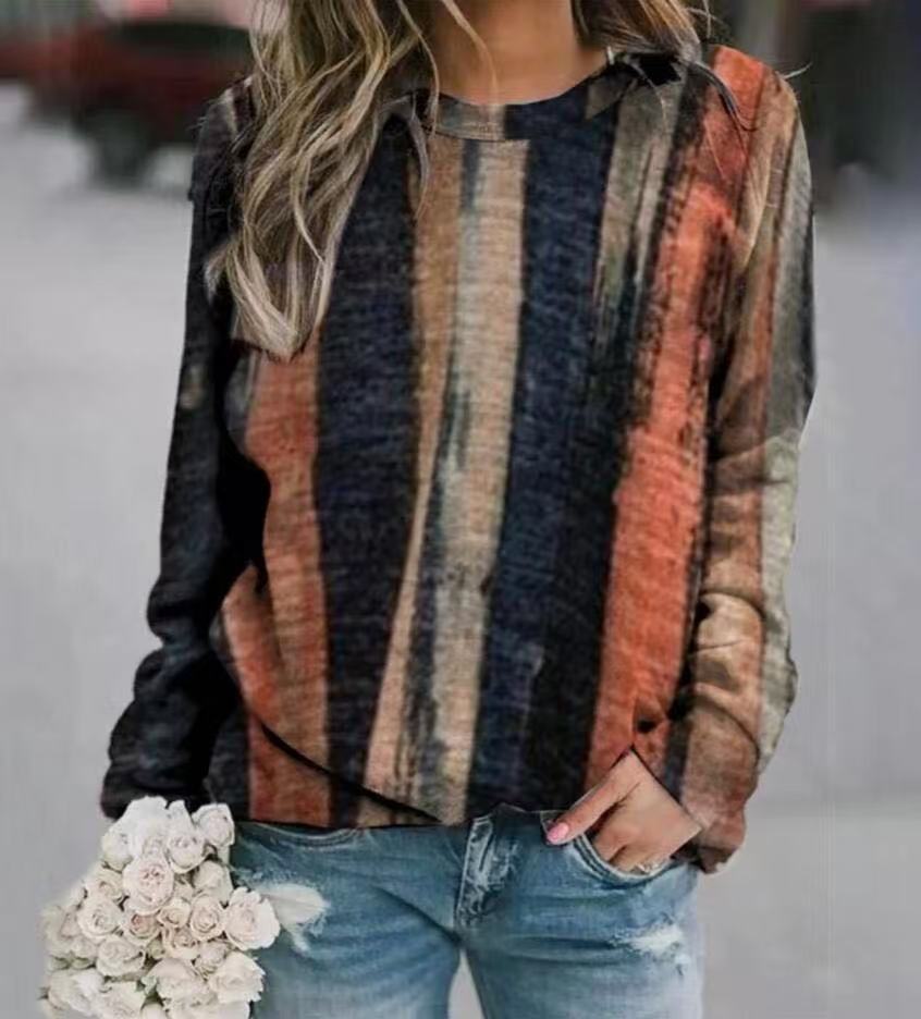 This long sleeve crew neck sweatshirt top features a distinctive rendered print that adds a modern, artistic touch to classic comfort. Crafted for everyday wear, it offers a relaxed fit with soft fabric to keep you comfortable throughout the day. Ideal for layering or wearing on its own, this sweatshirt balances style and practicality, making it a versatile addition to any wardrobe.