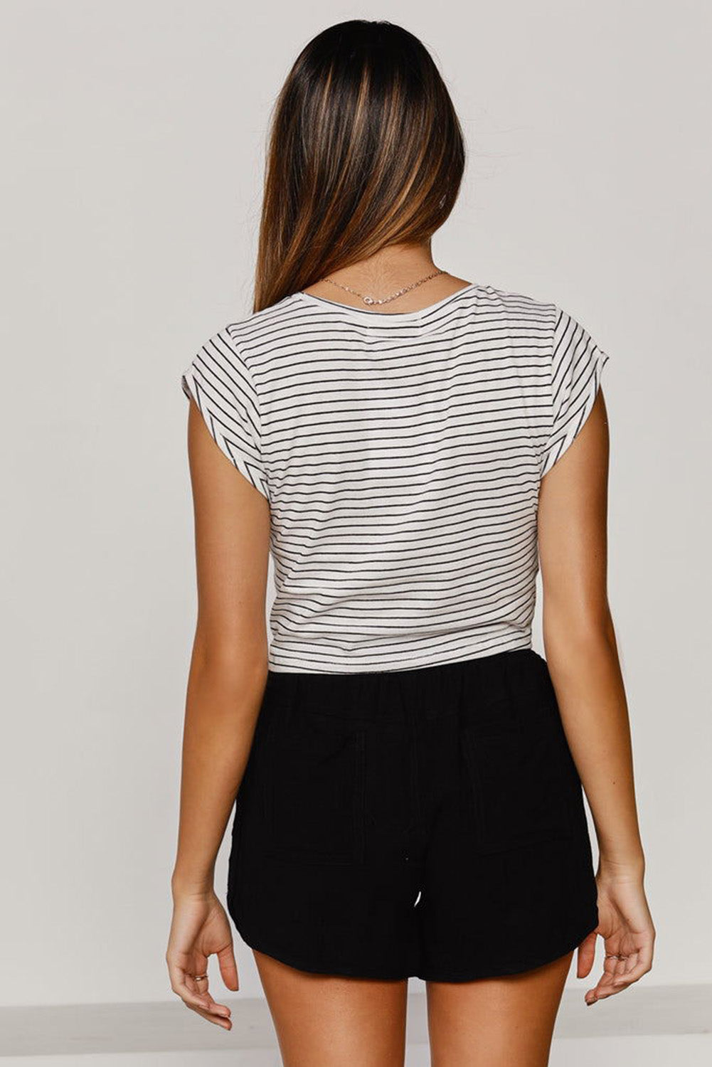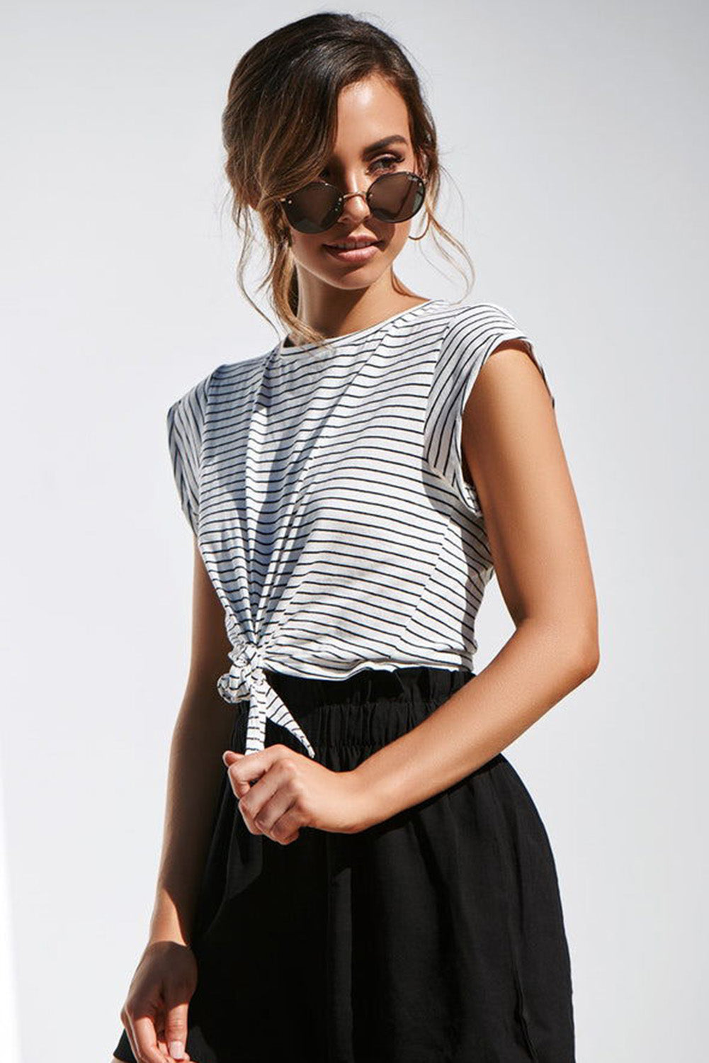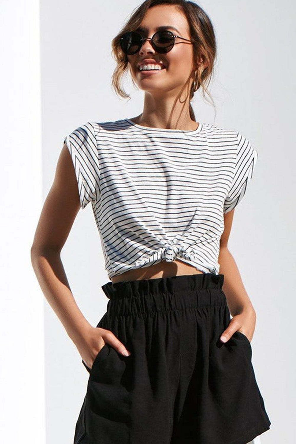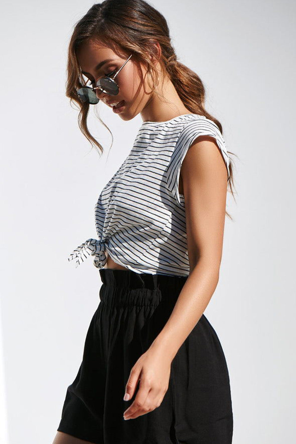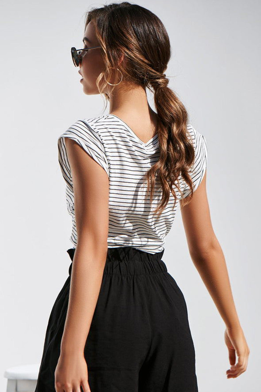 This simple wardrobe staple features a classical striped pattern A slight cuff on the sleeve, semi cropped length and chic... Read more