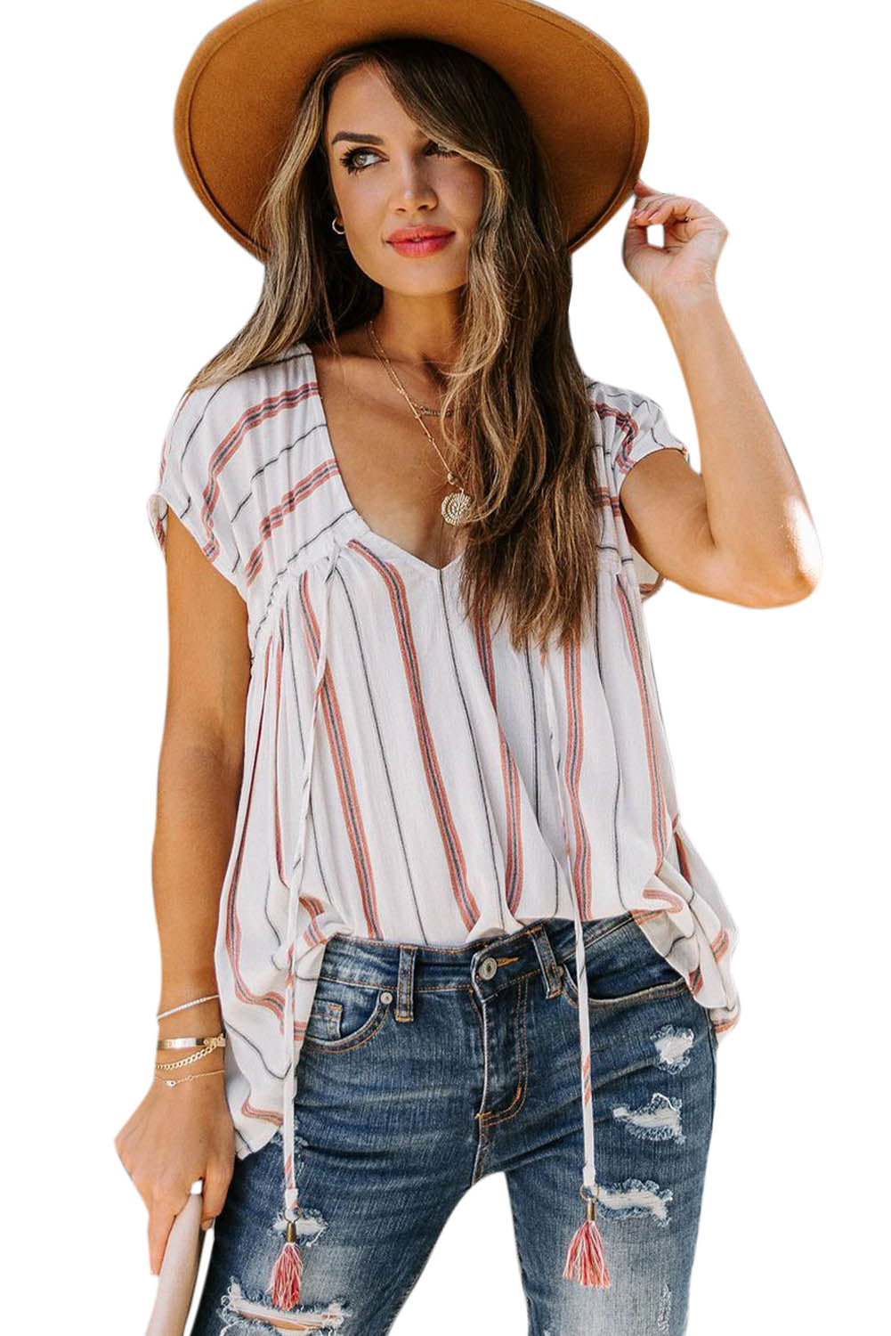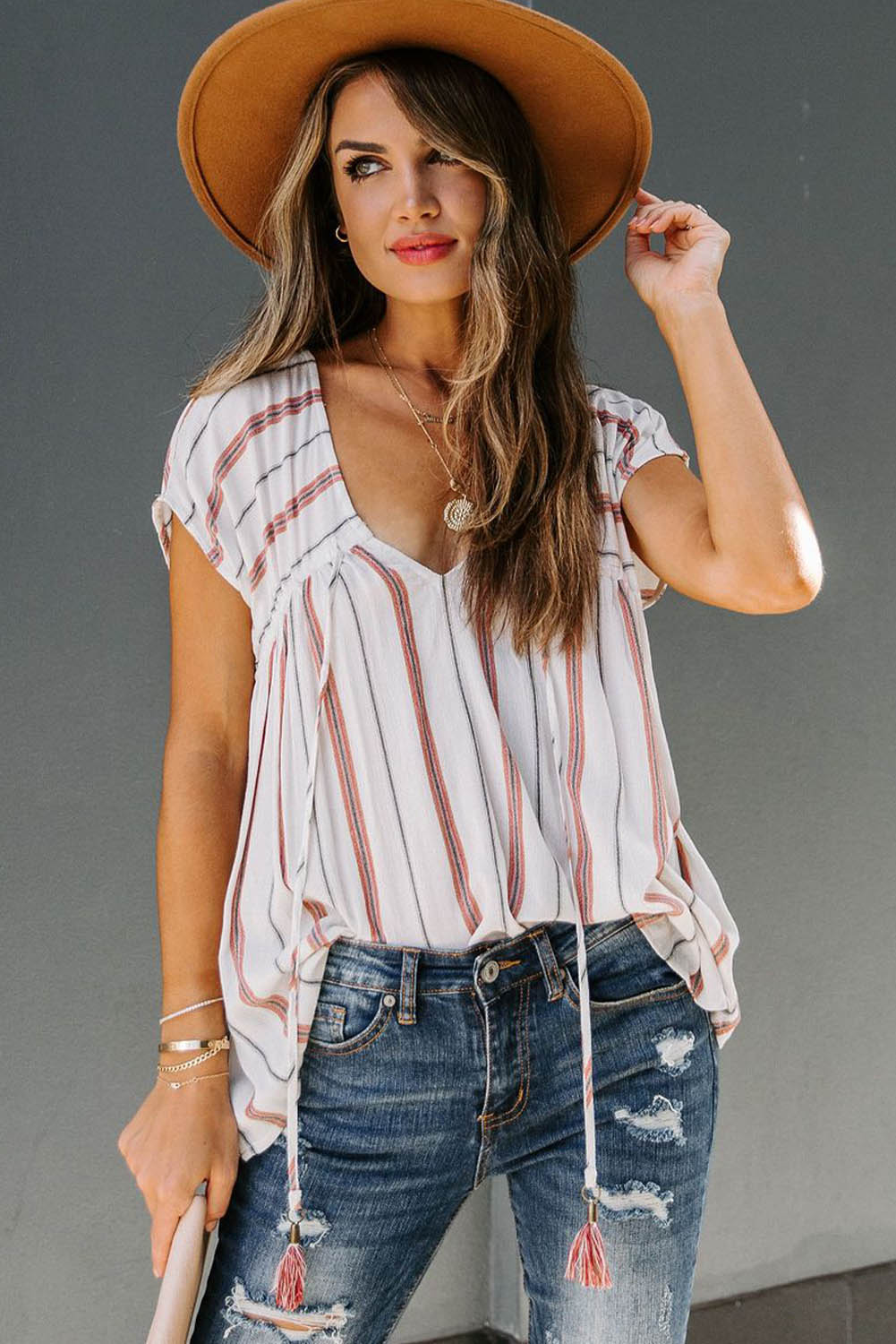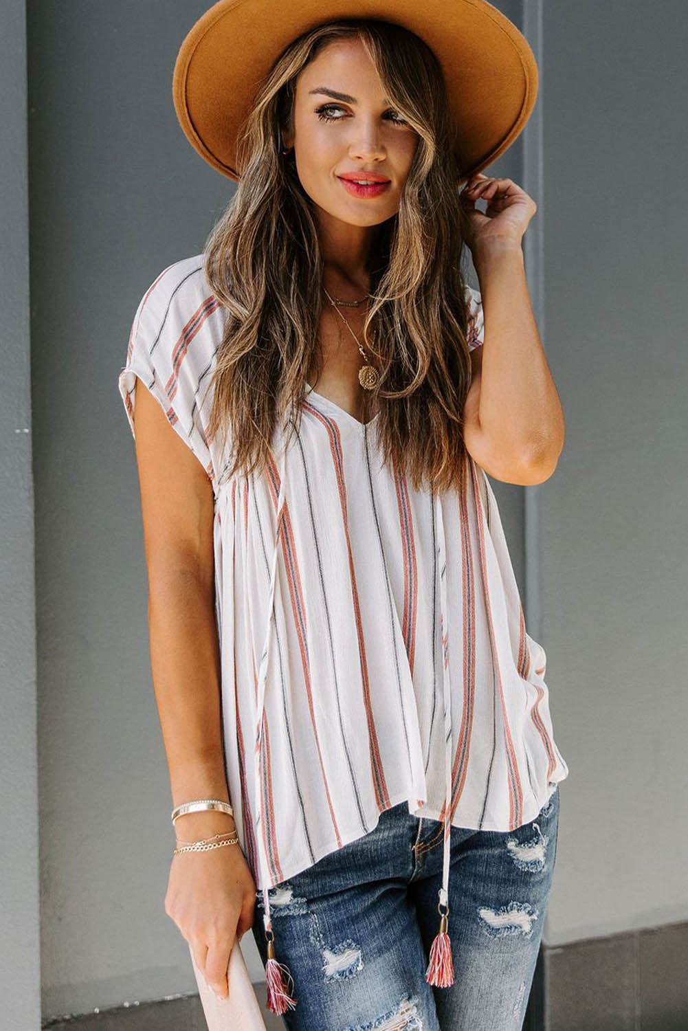 • •The unique striped pattern of this flowy top is easy to catch eyes