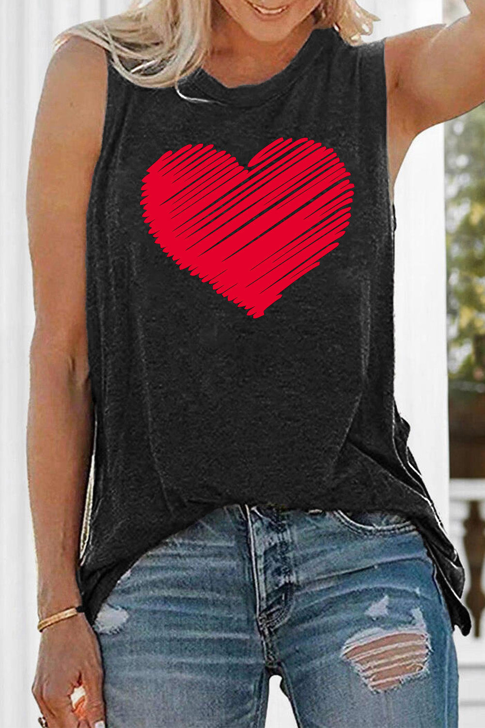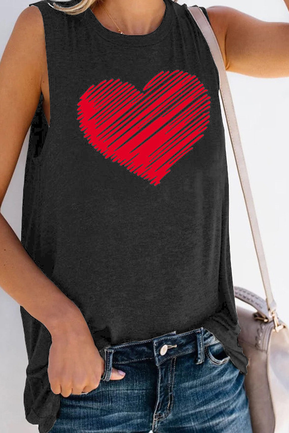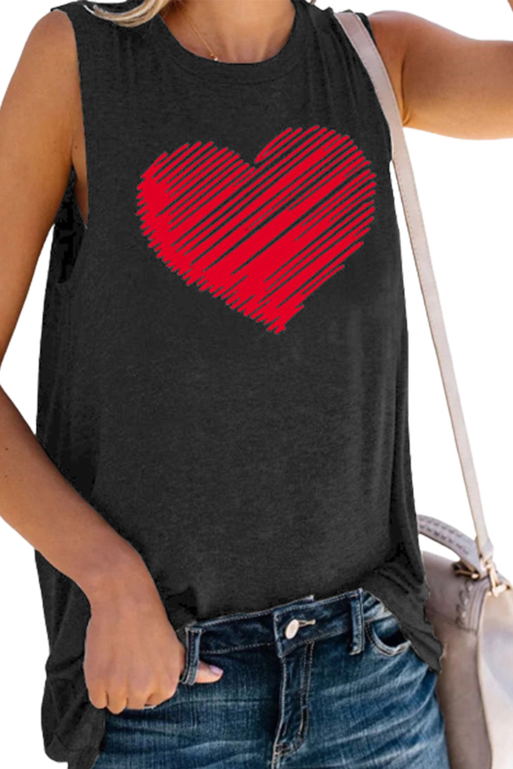 Valentine Heart Print Loose Crew Neck Tank Top Read more