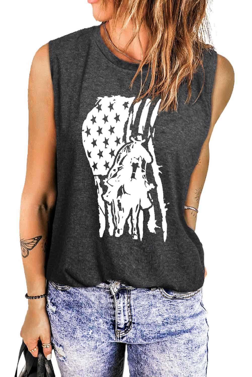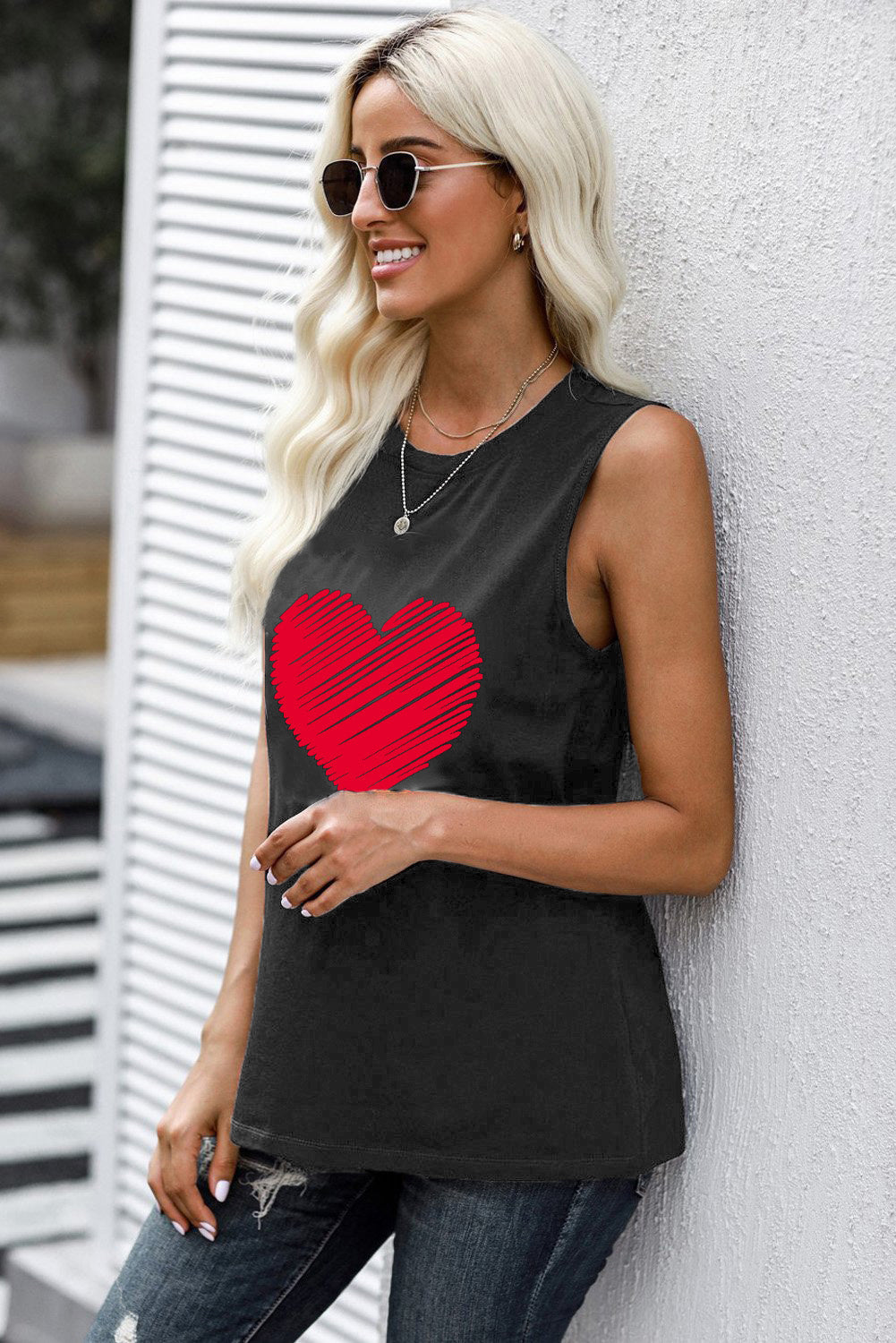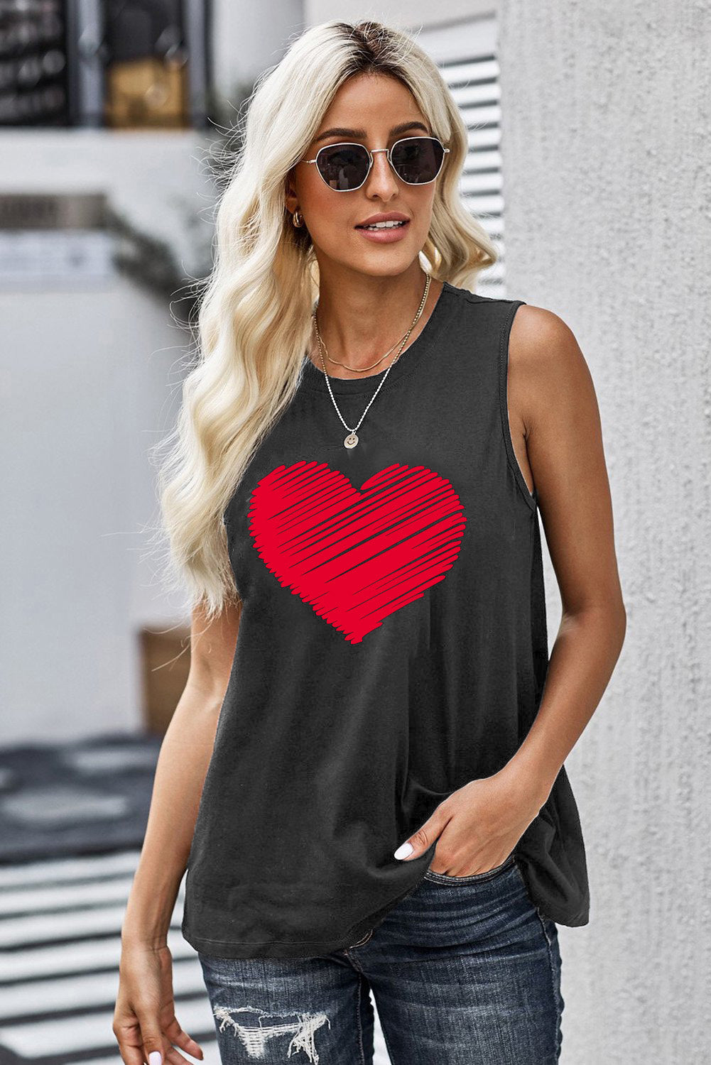 Valentine Heart Print Loose Crew Neck Tank Top Read more